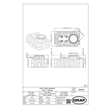 GRAF Flachtank Platin, 1500 Liter, Paket Gartenkomfort, begehbar