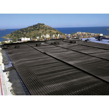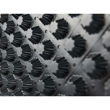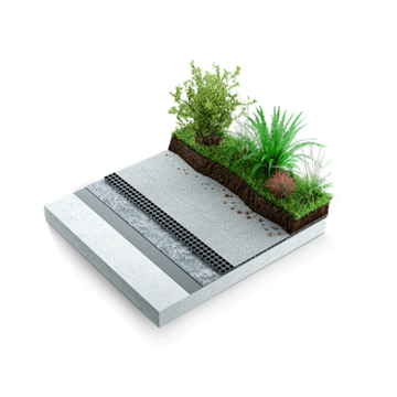 Diffusionsfähige Schutz- und Dränbahn mit Wasserspeicherfunktion. Flächendränung und Wasserspeicher in einem. Bestens geeignet für die Anwendung auf begrünten Dächern wie auch auf Umkehrdächern geeignet.